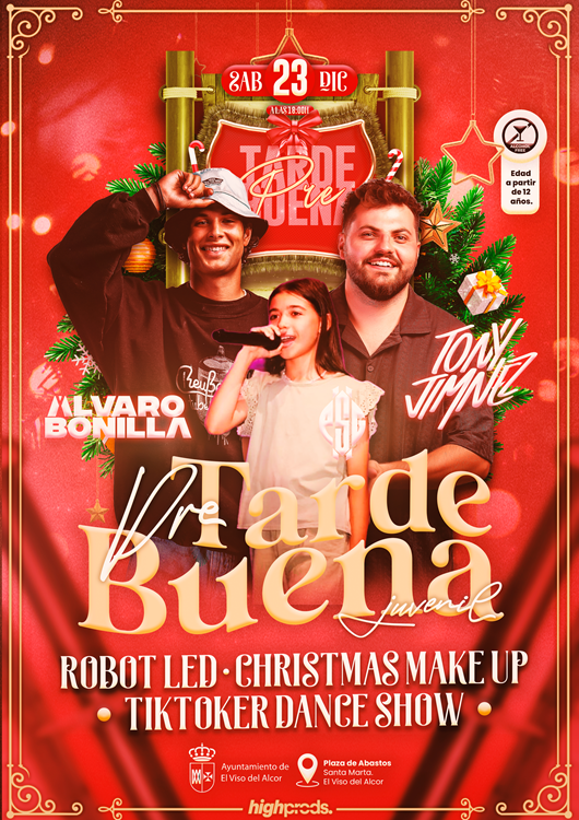 El Ayuntamiento de El Viso del Alcor, a través de la Delegación de Juventud, organiza una Pretardebuena Juvenil en la Plaza de Abastos el 23 de diciembre a partir de las 18:00 horas. El Alcalde, Gabi Santos, explica que se trata de una actividad muy demandada por las familias que pedían una iniciativa por estas fechas destinadas a los jóvenes del municipio. El evento es a partir de los 12 años y no está permitido el acceso de alcohol.