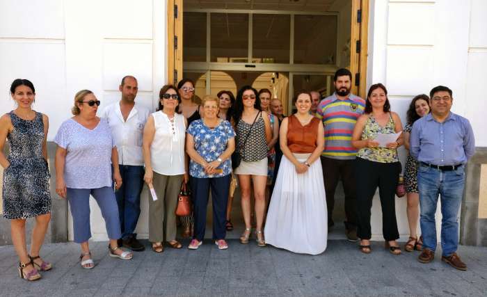 Durante la concentración, presidida por la Alcladesa, Anabel Burgos, Praena ha procedido a la lectura del manifiesto que se ha leído en todos los Ayuntamientos del país que se han sumado a esta concentración.