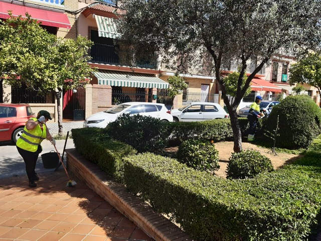 La Delegación de Medio Ambiente tiene establecido un Plan de mantenimiento de zonas verdes y plazas de la localidad con el objetivo de proceder a su limpieza y mantenimiento todos los meses. En la mañana de hoy se encuentran, entre otras, en la Plaza Antonio León Núñez. Ayer estuvieron en Plaza de las Educadoras y Plaza del Sol