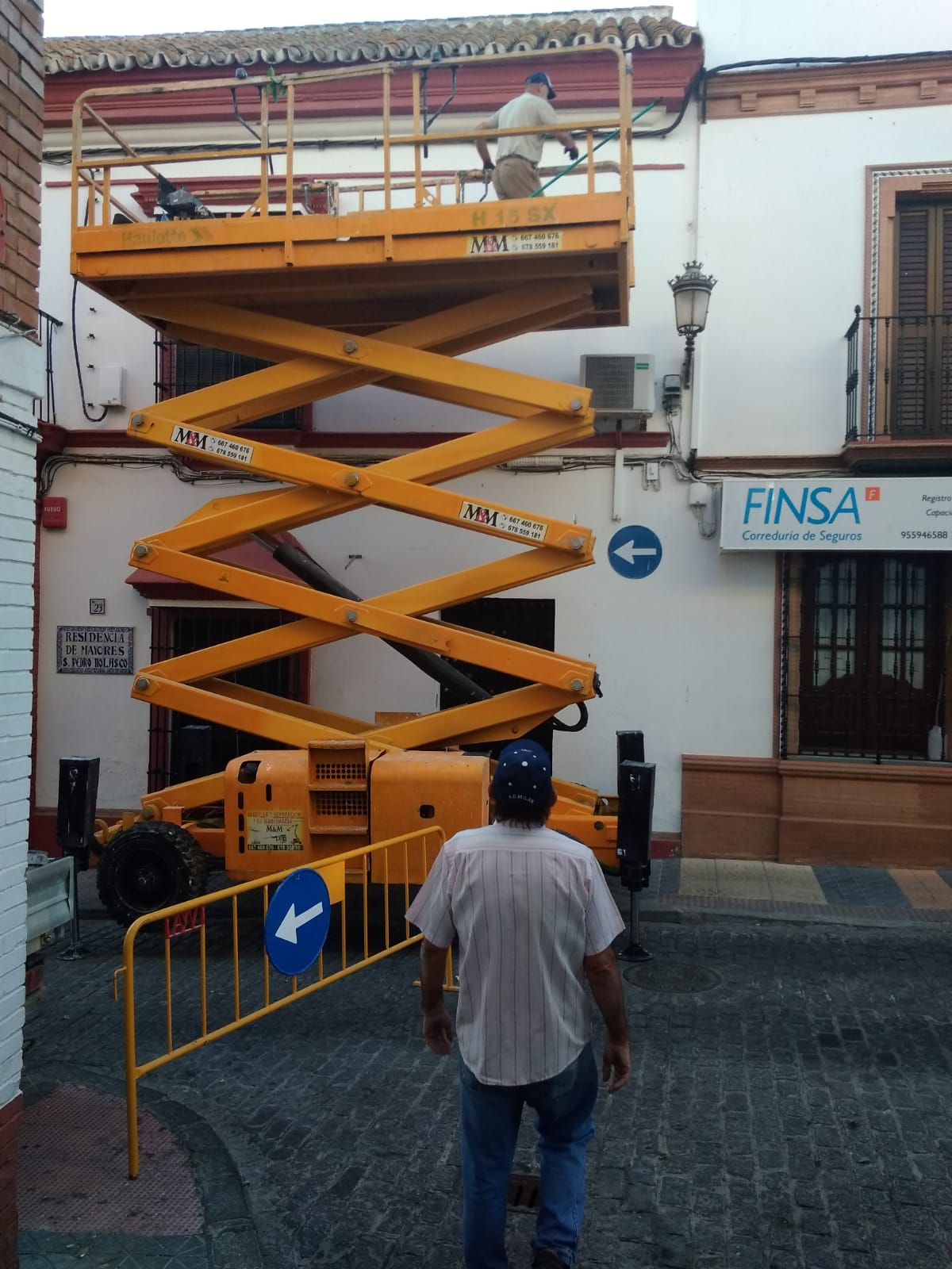 El Ayuntamiento de El Viso del Alcor, junto a Graphenstone, están procediendo al pintado de la Residencia de Ancianos San Pedro Nolasco. Desde el Consistorio se aporta en este proyecto de colaboración la mano de obra y el alquiler de la grúa.