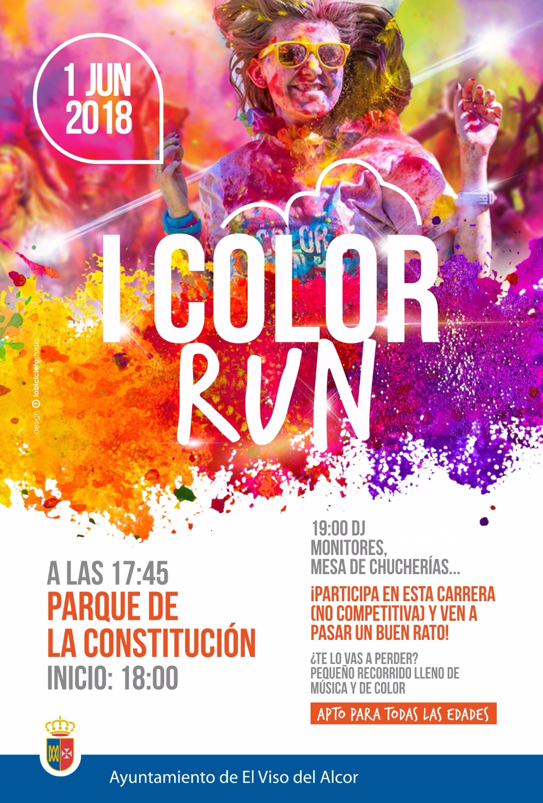 La Delegación de Juventud organiza la I Color Run, enmarcada dentro del proyecto local de juventud que se desarrolla en el municipio a través de la Diputación Provincial de Sevilla. Será el próximo viernes 1 de junio a las 18,00 horas en el Parque de la Constitución.