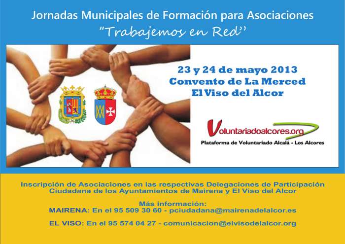 La Plataforma de Voluntariado Alcalá- Los Alcores organiza, con la colaboración del Ayuntamiento, las jornadas municipales de formación para asociaciones Trabajemos en red, los días 23 y 24 de mayo en el Centro Cultural Convento de la Merced.
