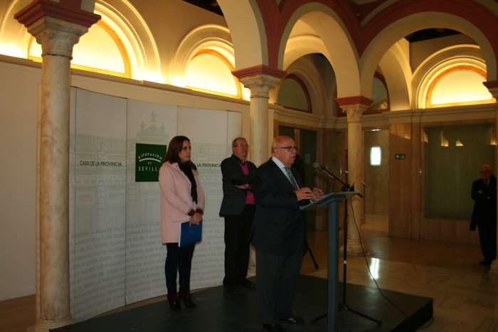 Domínguez fue el encargado de dar la bienvenida y afirmó sentirse muy feliz de que la casa de la provincia acogiera esta exposición de un visueño. Señaló que el objetivo de la casa de la Provincia es que los pueblos de Sevilla la sientan suya “de manera que sea un espacio en el que confluya la diversidad, tradición, patrimonio... en un escaparte en el que mostrarse a toda Sevilla”.