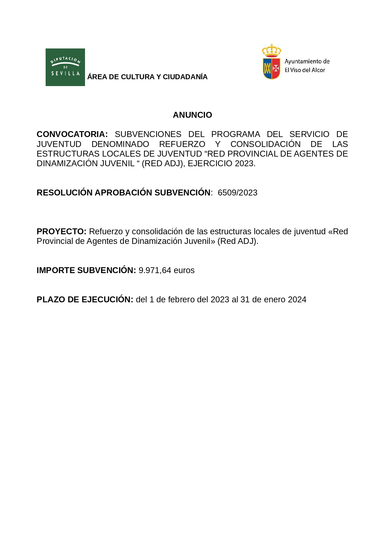 Descargar Pdf lunes 18 de marzo de 2024 SUBVENCIONES DEL PROGRAMA DEL SERVICIO DE JUVENTUD DENOMINADO Y CONSOLIDACIÓN DE LAS ESTRUCTURAS "RED PROVINCIAL DE AGENTES DE DINAMIZACIÓN JUVENIL" Descargar Pdf