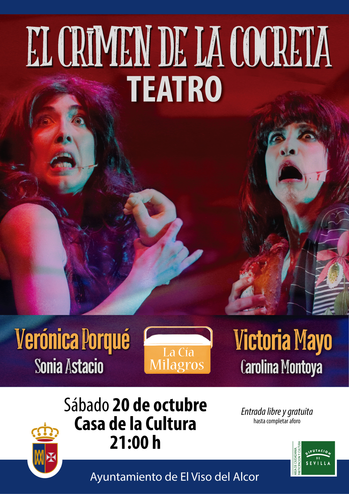 La Delegación de Cultura del Ayuntamiento organiza la representación de la comedia “El Crimen de la cocreta” el sábado 20 de OCTUBRE a las 21:00 horas en la Casa de la Cultura.