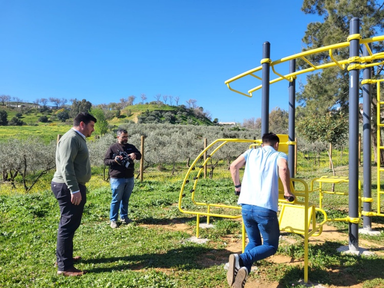 El Alcalde de El Viso del Alcor, Gabi Santos, y el Delegado de Deportes, Manuel Salvat, han visitado la nueva zona de calistenia que se encuentra en el Parque de La Muela y que ya está disponible para su uso. Esta nueva mejora, que se ubica entre el lago y el área de autocaravanas, ofrece una zona de ejercicios multifuncionales para trabajar distintos grupos musculares. El Alcalde ha valorado ante los medios de comunicación la apuesta que sigue haciendo el Equipo de Gobierno por dotar al pulmón verde de distintos recursos para hacerlo útil a la ciudadanía.