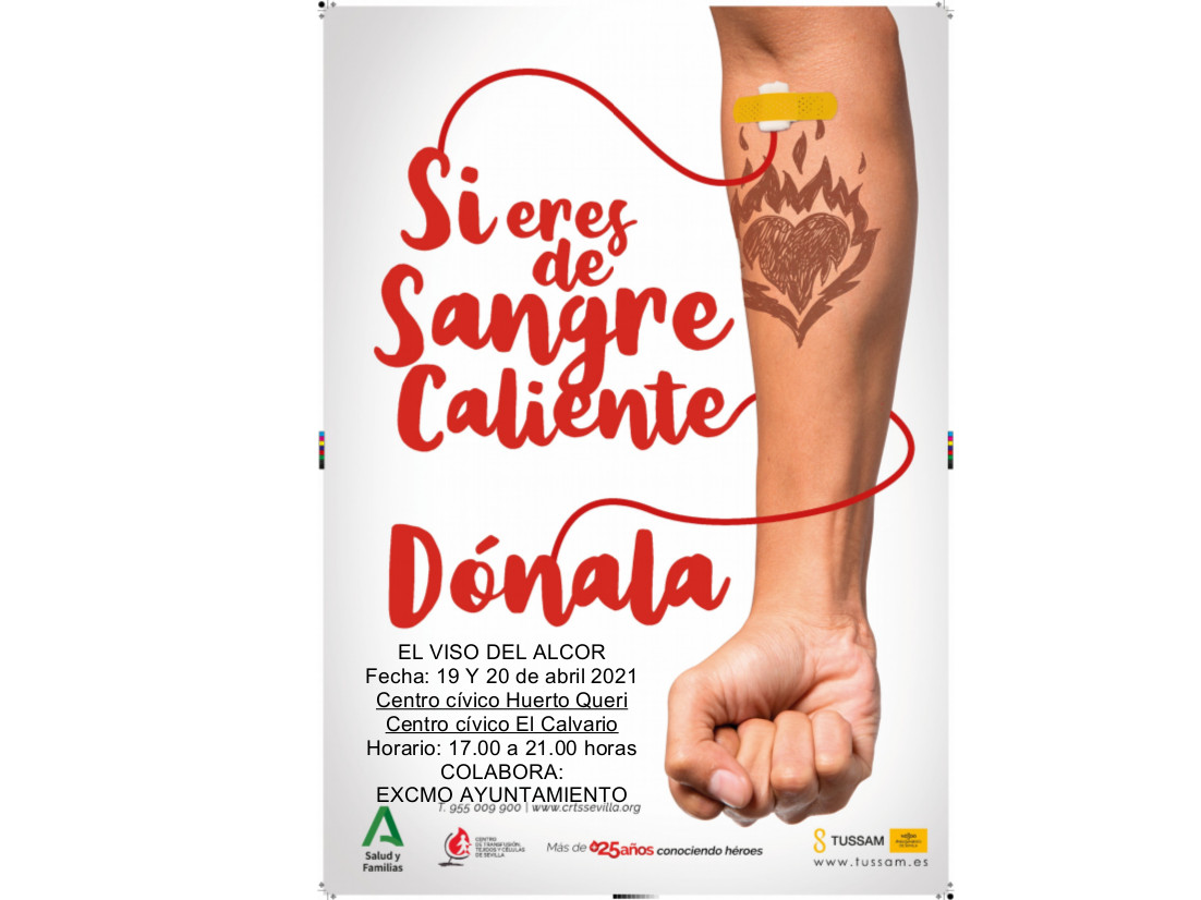 El Centro Regional de Transfusión Sanguínea de Sevilla realiza una nueva campaña de donación de sangre en la localidad EL LUNES 19 Y MARTES 20 DE ABRIL. Será en EL CENTRO CÍVICO DEL HUERTO QUERI Y CENTRO CÍVICO EL CALVARIO en horario de 17.00 a 21.00 horas. Se necesita sangre de todos los grupos sanguíneos.