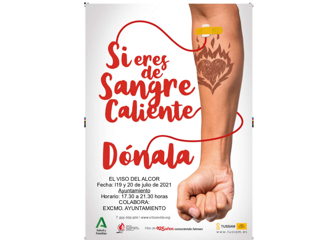 El Centro Regional de Transfusión Sanguínea de Sevilla realiza una nueva campaña de donación de sangre en la localidad EL LUNES 19 Y MARTES 20 DE JULIO. Será en EL SALÓN DE PLENOS DEL AYUNTAMIENTO en horario de 17.30 a 21.30 horas. Se necesita sangre de todos los grupos sanguíneos.