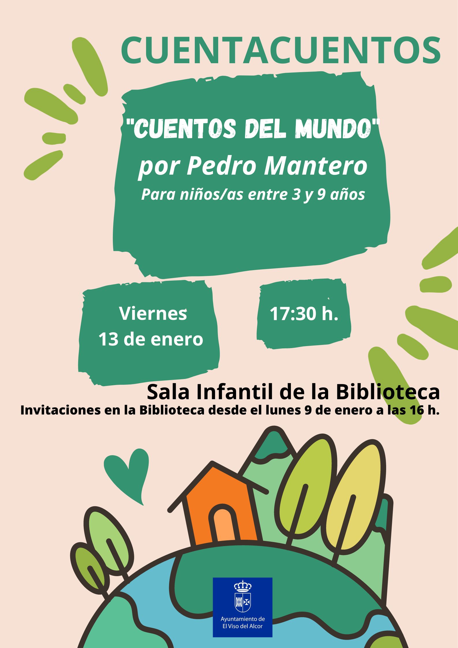 La Delegación de Cultura del Ayuntamiento organiza una nueva sesión de Cuentacuentos a cargo de Pedro Mantero el VIERNES 13 DE ENERO A LAS 17:30 H. EN LA SALA INFANTIL DE LA BIBLIOTECA MUNICIPAL. El cuentacuentos es para niños/as ENTRE 3 Y 9 AÑOS.