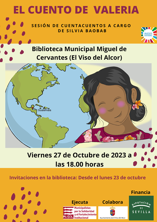 El Ayuntamiento de El Viso del Alcor, a través de la Delegación de Cultura, organiza una nueva sesión de Cuentacuentos a cargo de Silvia Baobab, será el viernes 27 de octubre a las 18:00 horas en la sala infantil de la Biblioteca Municipal “Miguel de Cervantes”. El Delegado de Cultura, Francisco José Soto, detalla que el cuentacuentos es para niños/as entre 3 y 9 años y se organiza con la Fundación Musol y la colaboración de la Diputación de Sevilla.