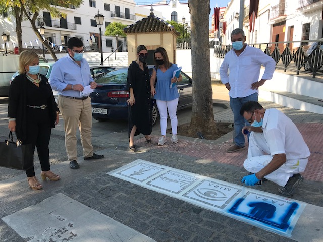 El Ayuntamiento va a proceder al pintado de pictogramas en los pasos de peatones de los centros educativos de la localidad, empezando hoy por la entrada al CEIP Gil López, con el objetivo de facilitar el paso de niños y niñas que necesitan comprender que deben hacer para cruzar.