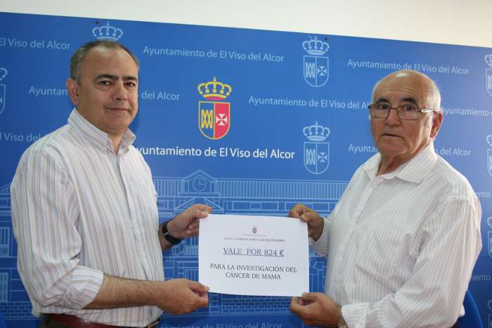 El Delegado de Deportes, Carlos Javier García, ha hecho entrega al Presidente de la Asociación Española contar el Cáncer en El Viso, Miguel López, del dinero recaudado en la XXVI Carrera Popular Bastilippo para la investigación del cáncer de mama.