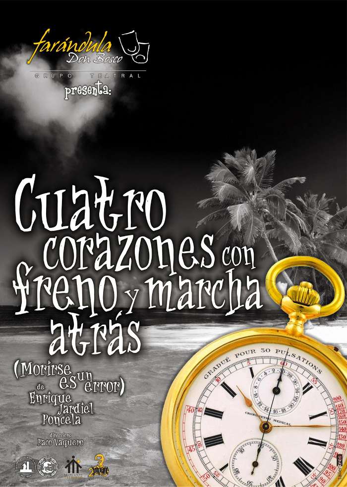 En cuanto a la obra Jiménez ha señalado que “La comedia de Jardiel Poncela Cuatro corazones con freno y marcha atrás o Morirse es un error, título con el que fue estrenada originalmente, es una Farsa en 3 actos adaptada para el grupo por su director, Paco Vaquero. Es una de las más interpretadas y celebradas de su autor y cuenta la historia de cuatro personas que no sólo se convierten en inmortales sino que, descontentos con ello, acaban rejuveneciendo. Tras ingerir el elixir de la eterna juventud, los protagonistas creen haber encontrado la solución a todos sus problemas y haber alcanzado la felicidad absoluta. Sin embargo lo que parece ser algo maravilloso se convierte en una existencia insoportable que los sumirá en la desesperación y el tedio”.
