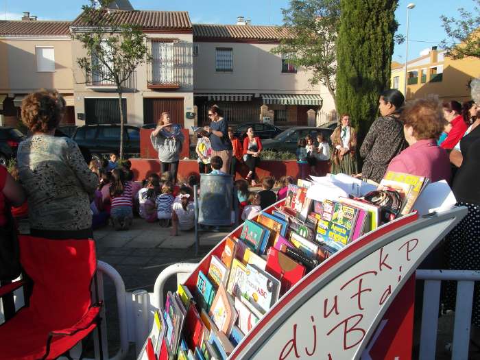 La Delegación de Cultura puso en marcha este proyecto de fomento de la lectura y de promoción de la Biblioteca Pública hace un mes, consistente en establecer un punto de lectura en distintas plazas de la localidad en horario de tarde, aprovechando la afluencia de público infantil en estas zonas de juego. En este punto de lectura se pudo disfrutar del préstamo de libros infantiles o de revistas y libros para adultos, con el fin de incorporar la lectura en el tiempo de ocio que se está en la plaza. Aparte se pudo aprovechar para hacerse socio y socia de la Biblioteca Municipal y recibir cualquier información sobre la misma.