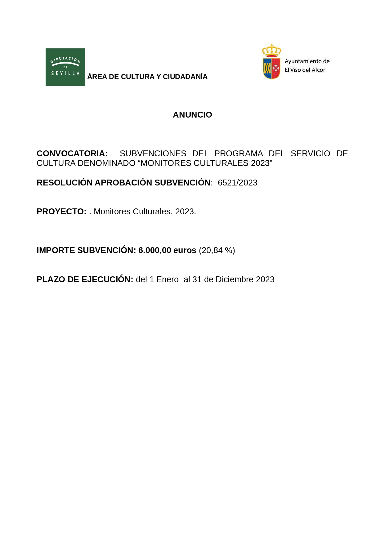 Descargar Pdf lunes 18 de marzo de 2024 SUBVENCIONES DEL PROGRAMA DEL SERVICIO DE CULTURA DENOMINADO MONITORES CULTURALES 2023 Descargar Pdf